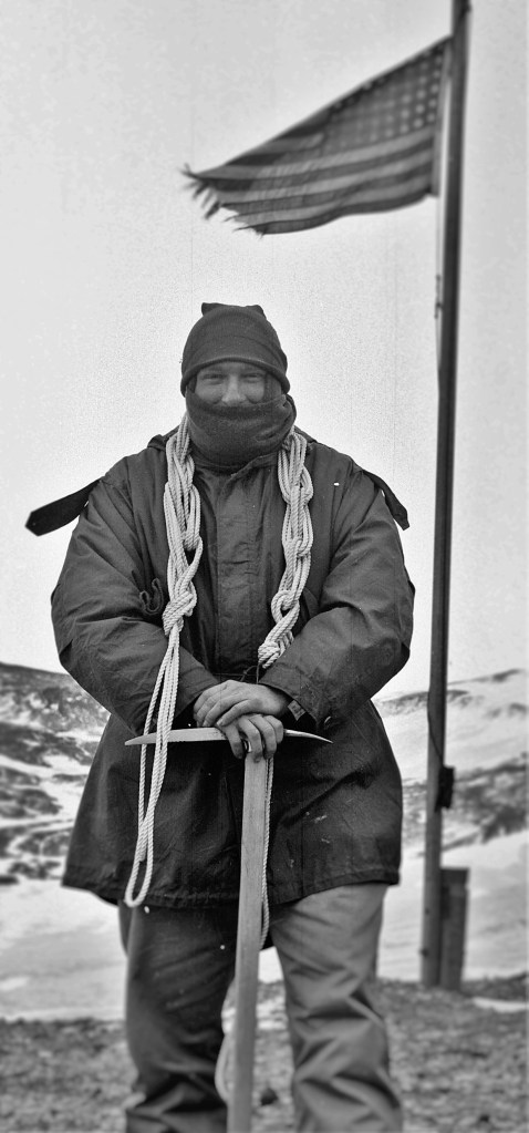 A few years ago, I was looking through a big book on the history of the Antarctic. I turned a page and there was a photo of me with my name under it. I was shocked! Then I became delighted. I then realized that this was a history book, and I was in it. Oh my God! Am I really so old that I am talked about in a history book? All of these emotions passed through me in about a ten second time period. I looked in the mirror and confirmed that I was old enough. They said that I was the first person to dive through the sea ice of the Antarctic’s Ross Sea. I thought about it. What a horror to be listed with those other men as being the first to do anything. I was delighted again.